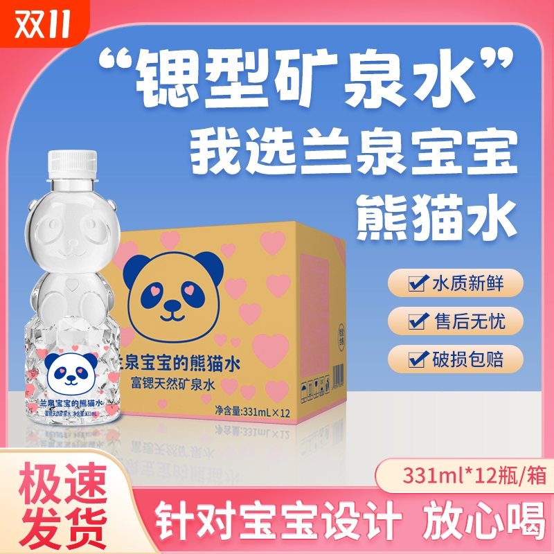 儿童熊猫水含锶天然矿泉水宝宝饮用水一瓶水整箱批发特价瓶装蓝色