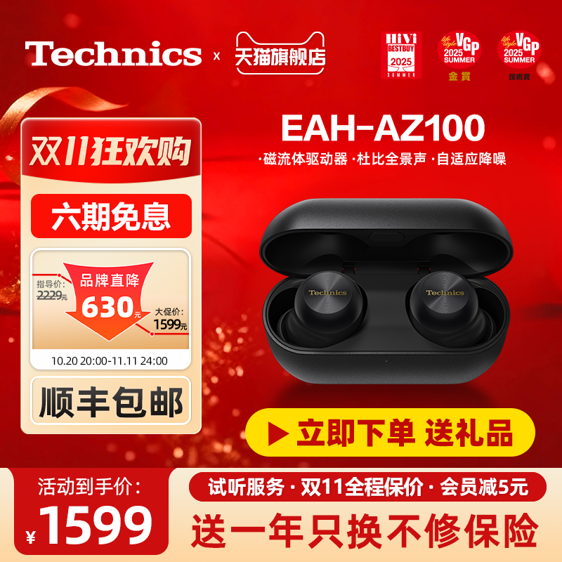 【保价双11】Technics EAH-AZ100松下黑胶豆磁流