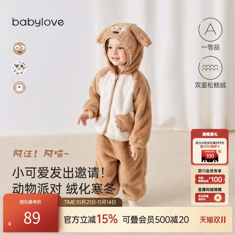 【清仓】babylove宝宝毛绒分体套装秋冬保暖睡衣造型婴幼儿家