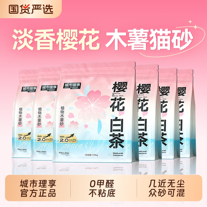盼四季白茶混合豆腐猫砂强效除臭沙可冲马桶无尘颗粒结团快膨润土