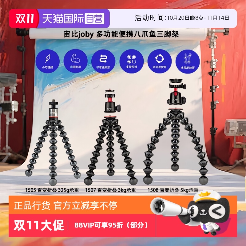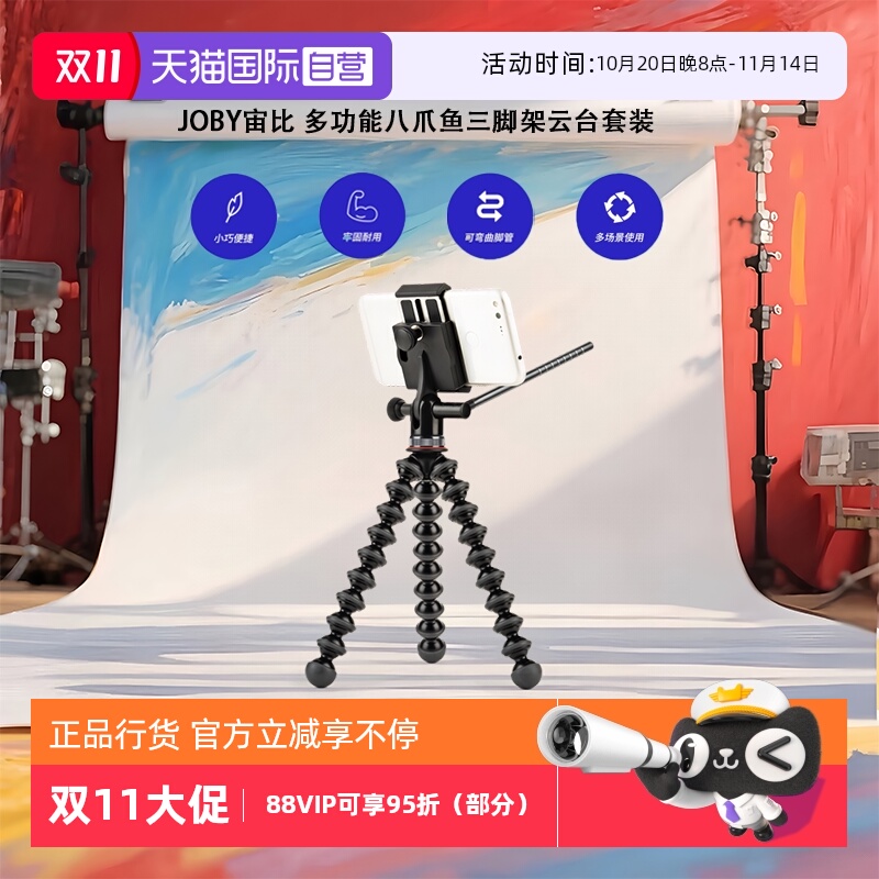 【自营】JOBY宙比多功能八爪鱼三脚架云台套装单反微单手机便携式