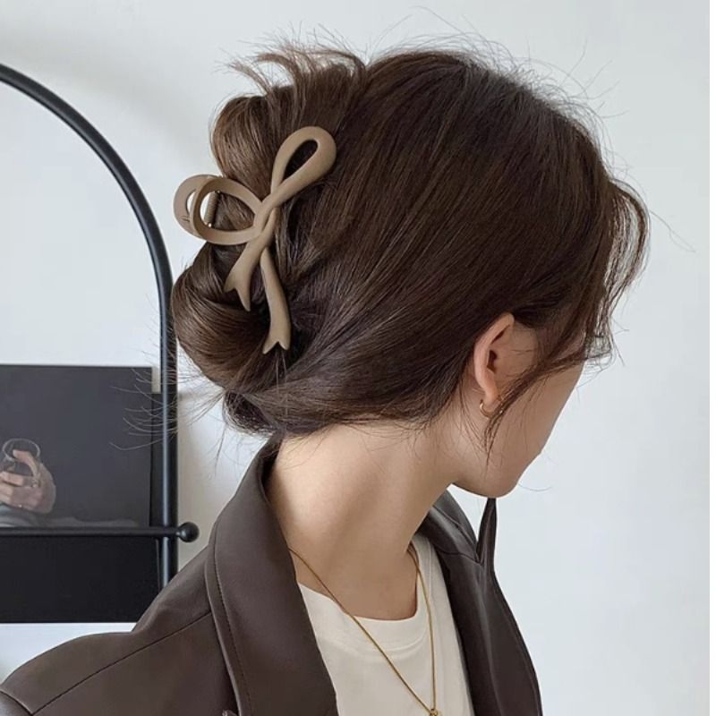 秋冬磨砂蝴蝶结发夹女高级感抓夹大号飘带鲨鱼夹多发量百搭夹盘发