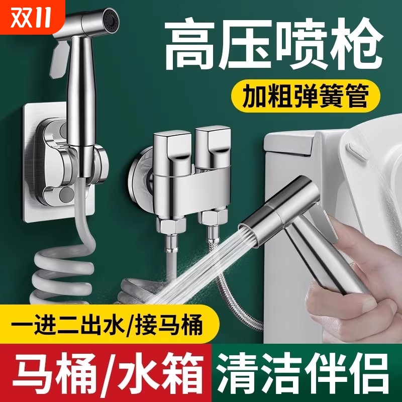 马桶伴侣喷枪一进二出角阀带高压冲洗厕所卫生间水枪全铜多功能