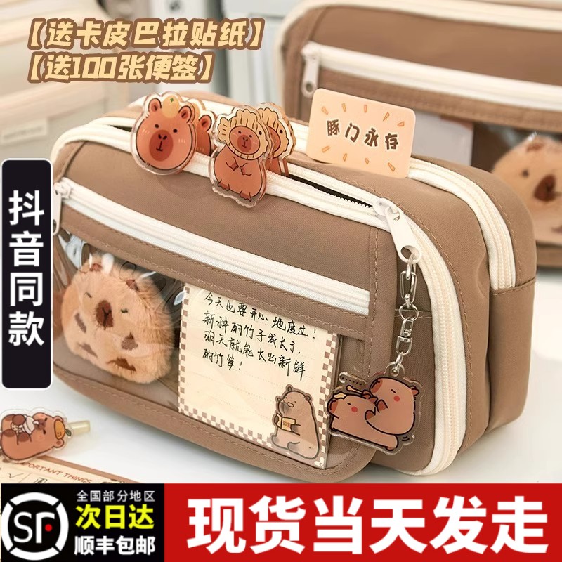 卡比巴拉文具盒笔袋玩偶皮2024年新款女孩耐脏免洗大容量盒高颜值