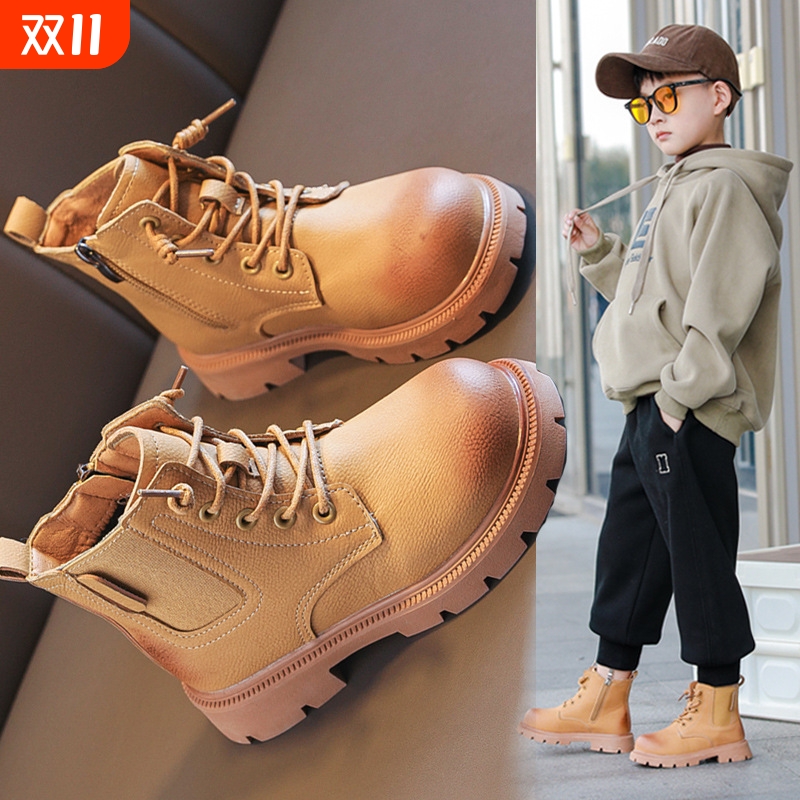儿童马丁靴2025秋季新款男童靴子大黄靴穿搭女童真皮皮靴加绒棉靴