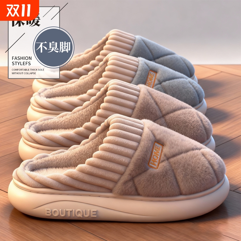 厚底棉拖鞋男士冬季2025新款家居室内毛绒保暖地板棉拖男款秋冬天