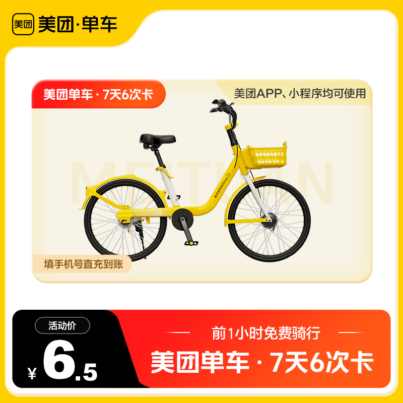【官方直充】美团单车共享单车骑行次卡 7天6次骑行卡 美团内使用