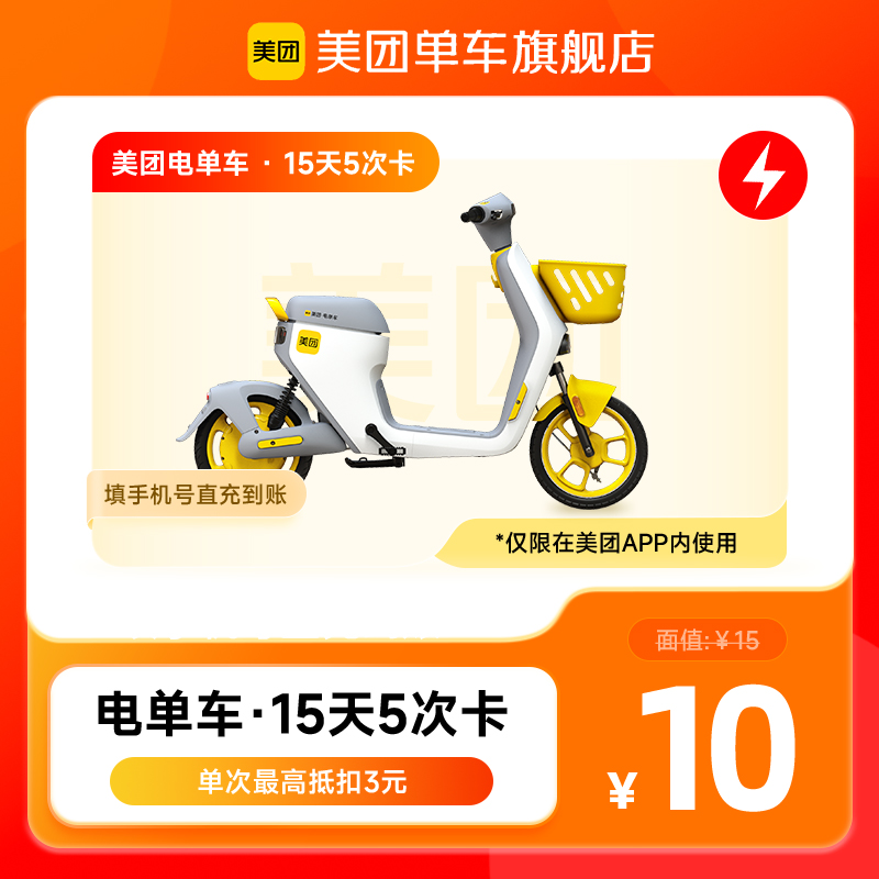 【官方直充】美团电单车骑行卡 美团助力车15天10次卡 美团内使