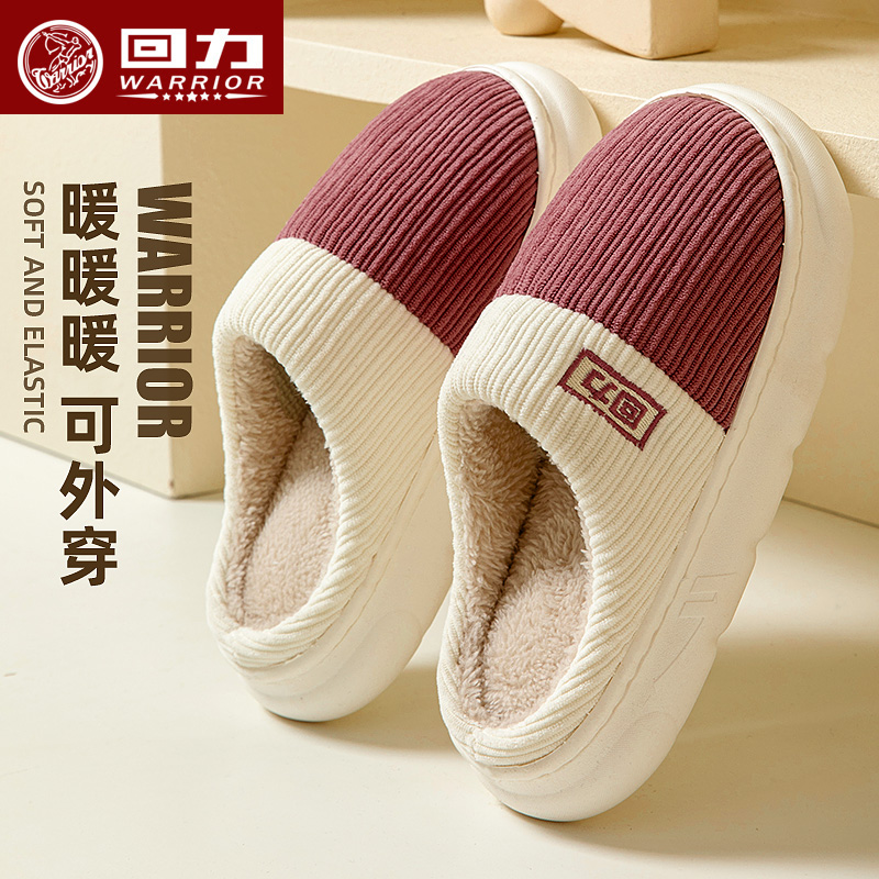 回力厚底防滑加绒保暖棉拖鞋秋冬