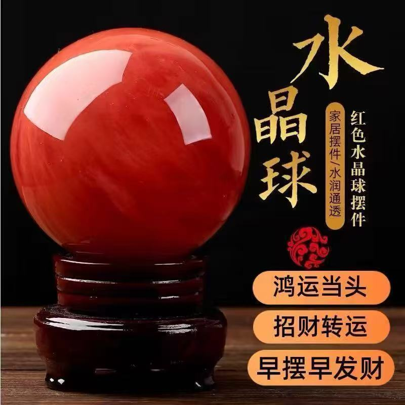 天然红水晶球摆件客厅办公桌装饰摆件熔炼水晶球摆件乔迁开业礼品