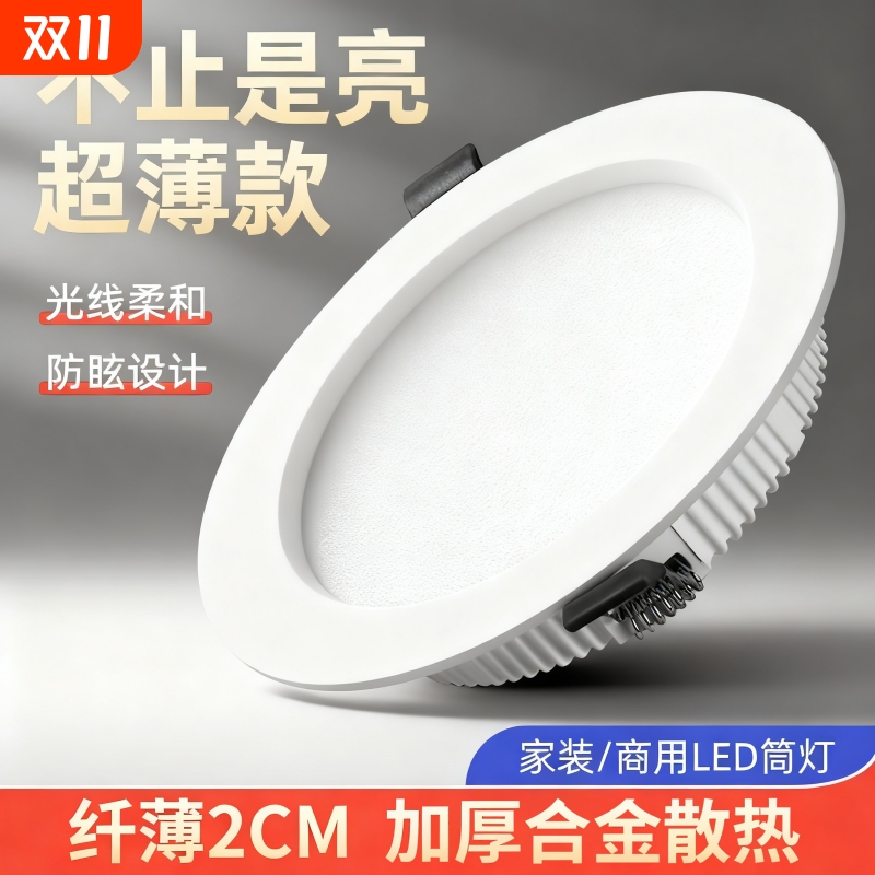 led超薄筒灯嵌入式开孔2.5寸3.5寸4寸6寸8寸吊顶圆形天花