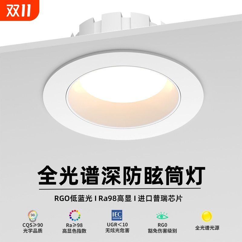 LED服装店专用筒灯4500k深杯防眩12开孔天花灯嵌入式客厅新