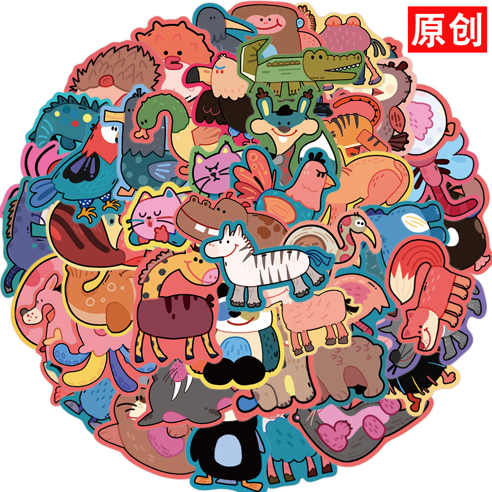 50张奇怪动物园涂鸦贴纸可DIY装饰吉他行李箱笔记本防水不侵权贴