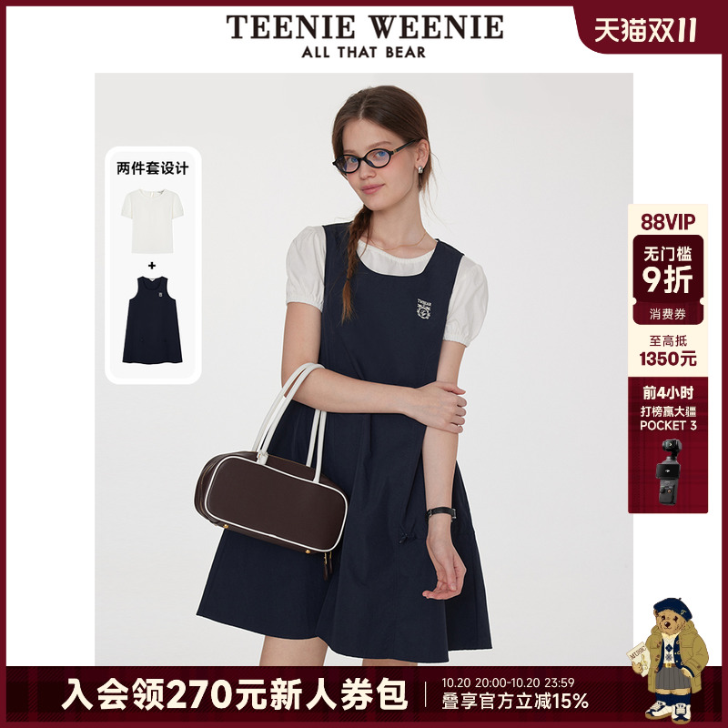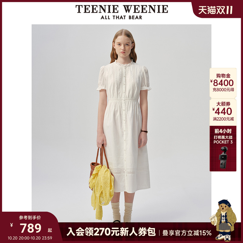 TeenieWeenie小熊夏季学院风设计感气质白色连衣裙短裙女