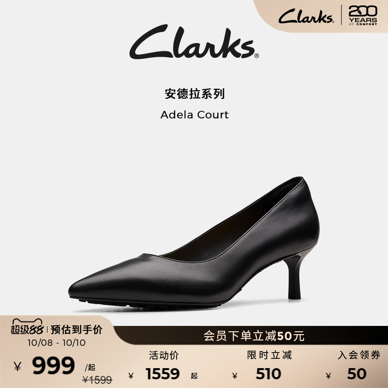 clarks优雅浅口羊皮小猫跟高跟鞋