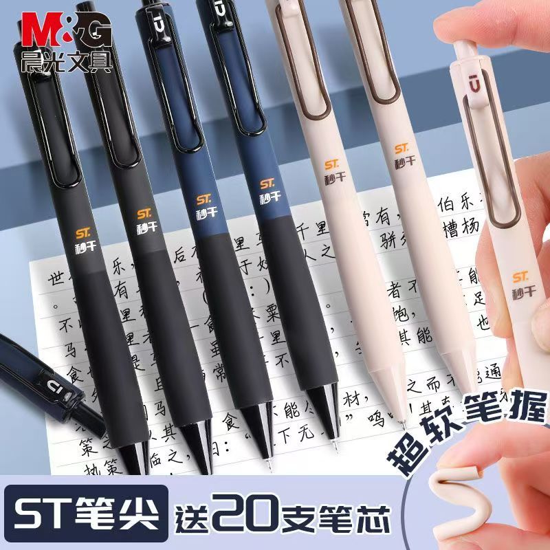 晨光优品特别好写好静音0.5黑按动中性笔ST头学生刷题签字笔K3