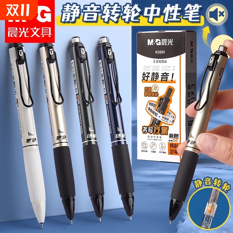 晨光好静音按动笔小分贝中性笔水笔大容量黑色速干考试专用st笔头超