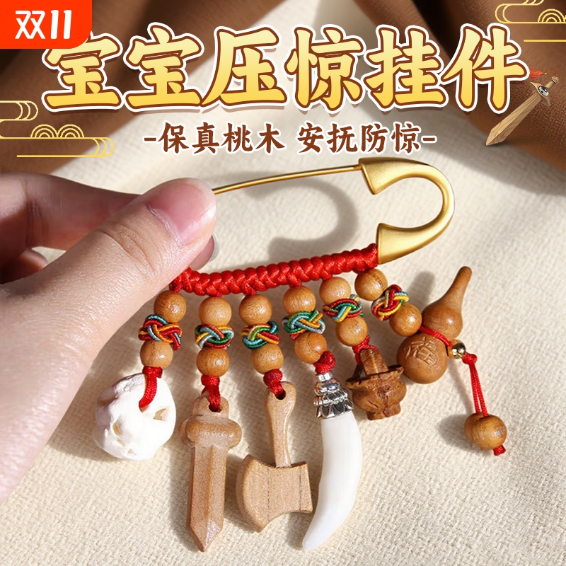婴儿桃木别针挂件护身符专用安全孕妇宝宝外出压惊黑狗牙桃木挂件