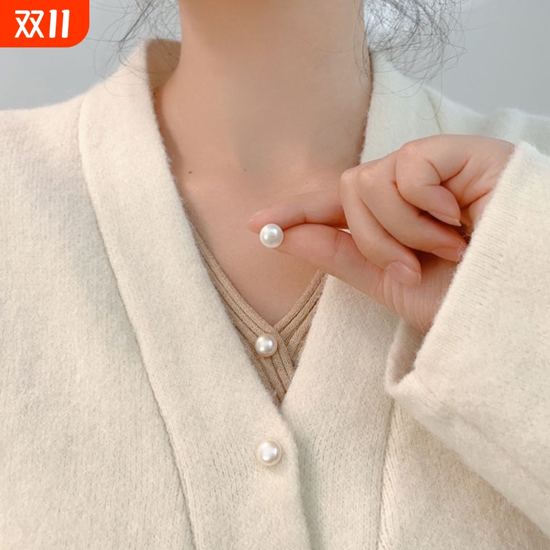 衣服隐形暗扣防走光神器V领大领口简约珍珠开衫衣领扣小别针胸针