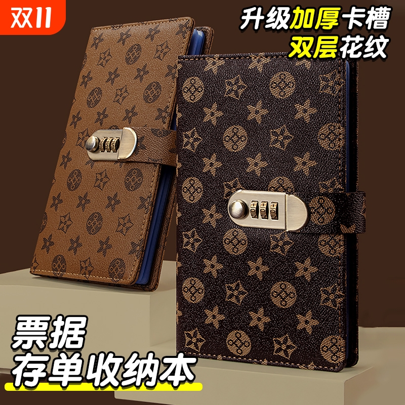 花纹支票定期存单收纳本带密码锁2025年新款银行纸质一体包大容量