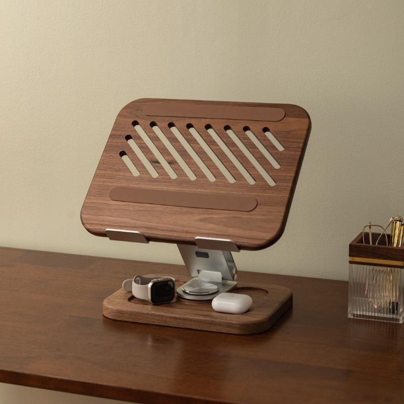 笔记型电脑支架平板支撑架桌面实木多功能增高架旋转散热工位神器