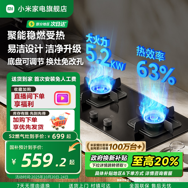 【政府补贴】小米米家智能燃气灶S2天然气灶液化气灶台嵌两用