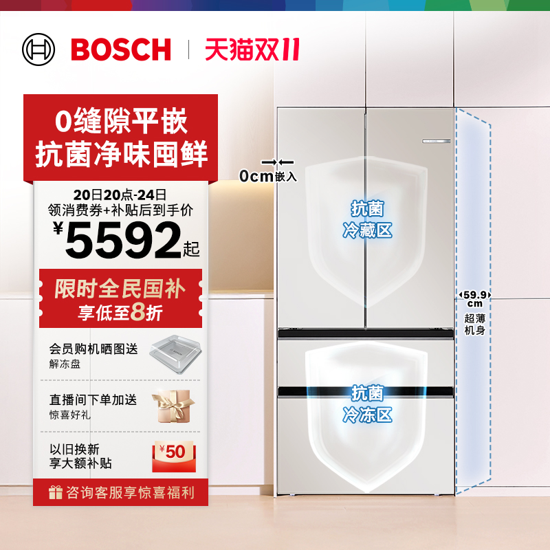 补贴20%海尔电冰箱425升玻璃零嵌入式法式五门一级能效家用旗舰
