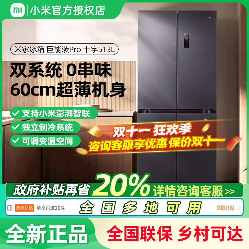 小米米家双系统巨能装513Pro十字四门60cm超薄风冷无霜冰箱