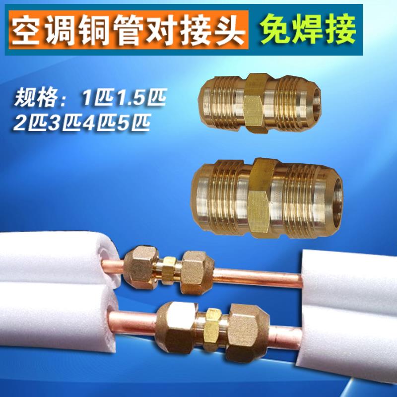 包邮加厚空调铜管对接头 带螺帽双接头1.5匹铜管加长 纳子免焊接