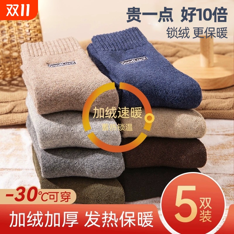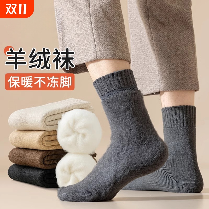 加绒加厚保暖男士毛圈中筒棉袜