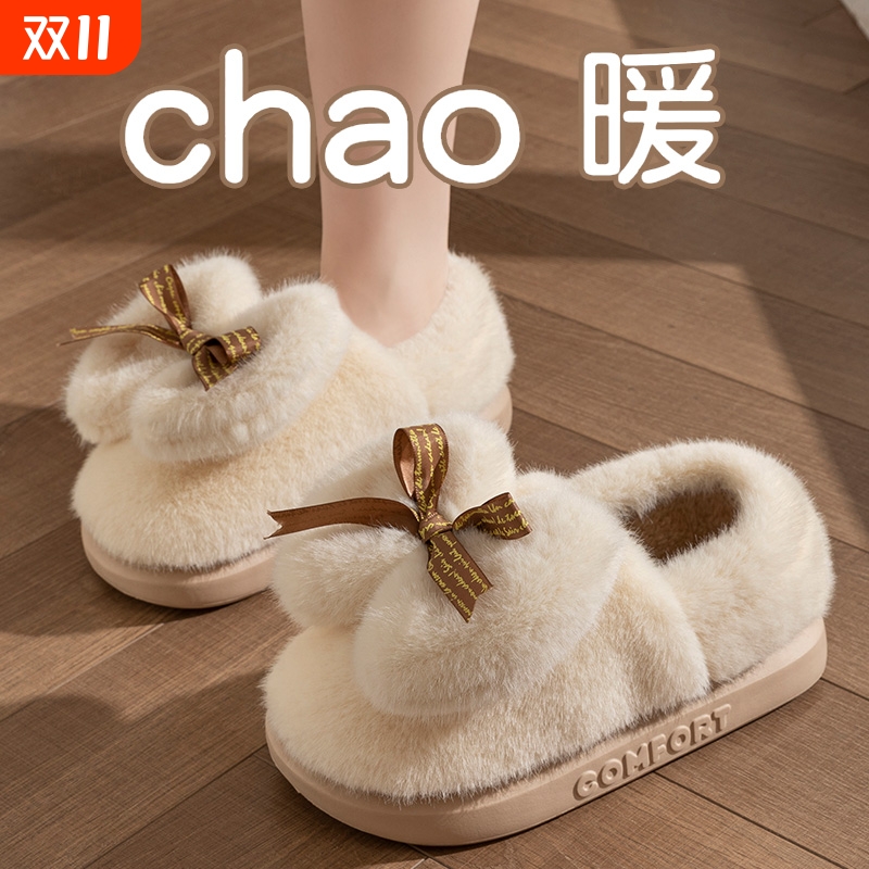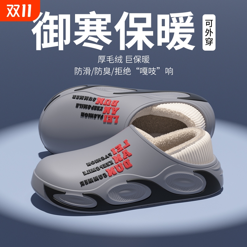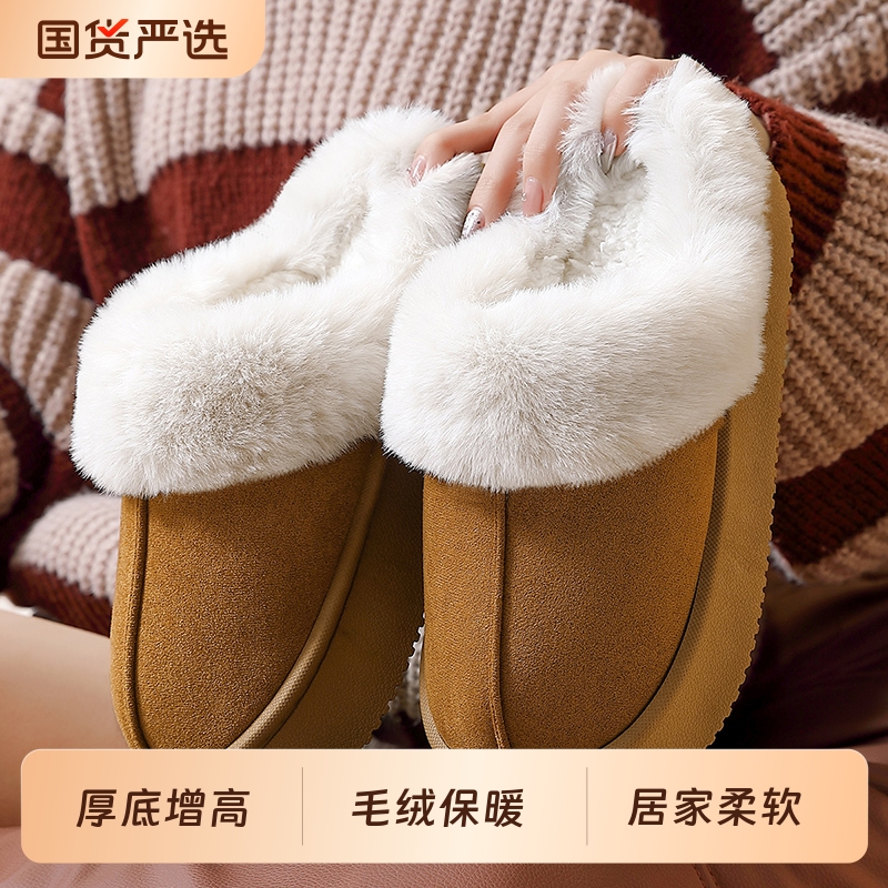 踩屎感棉拖鞋女士2025新款冬天居家防滑户外情侣厚底增高雪地靴