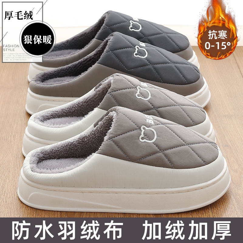 防水羽绒棉拖鞋女士冬季2025新款家居家保暖软底毛绒包跟棉鞋防滑