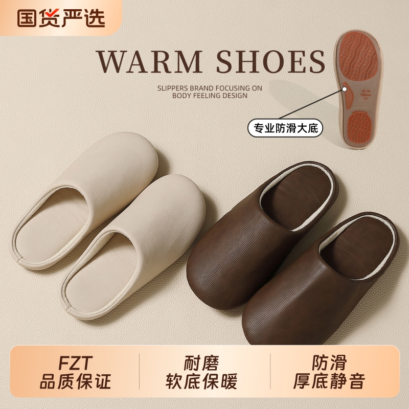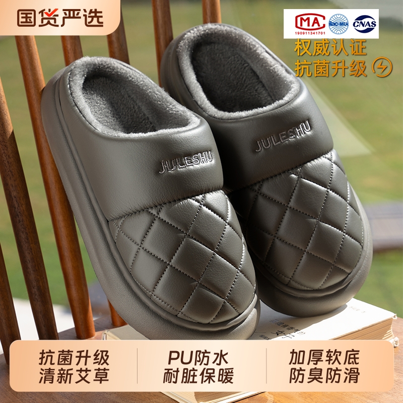 棉拖鞋男冬防滑抗菌防臭皮面防水