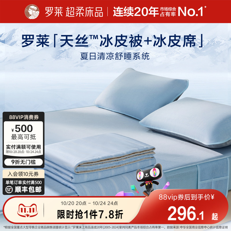 罗莱家纺A类冰丝凉席子凉感抗菌防螨高端双人学生宿舍两三件套