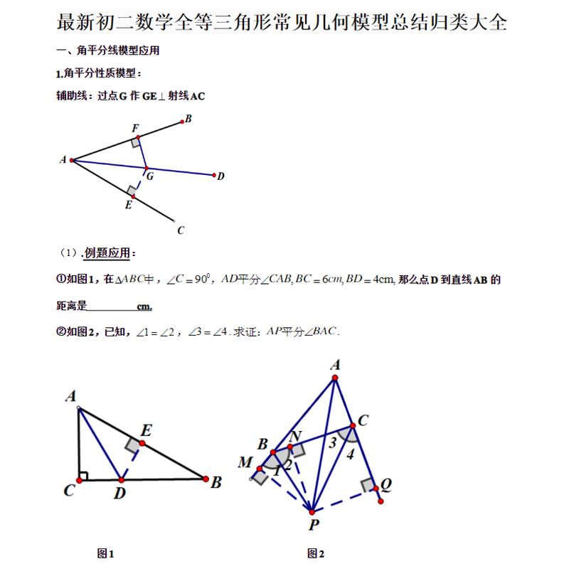 初中数学中考全等三角形常见几何模型总结归类大全Word电子版