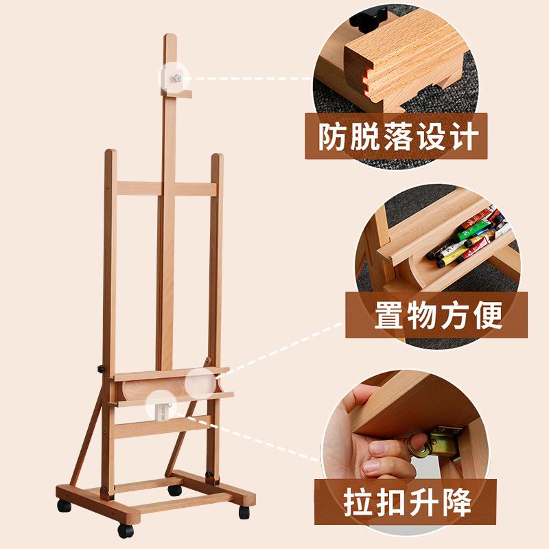 木大号榉木制落地画架实可降动画架可平移立儿童973升画板画架展