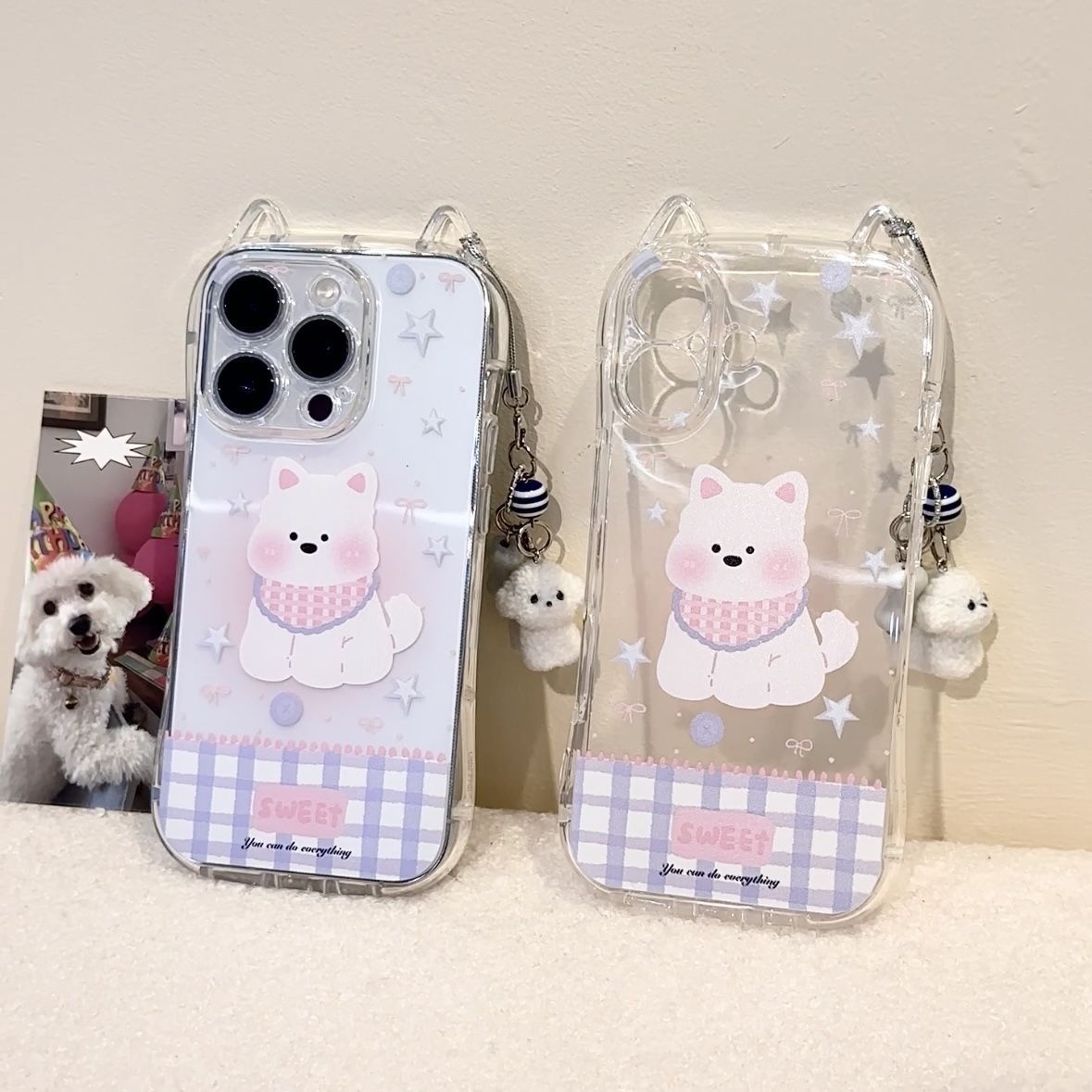 可爱狗狗适用苹果16手机壳16PROMAX猫耳手机壳13 14