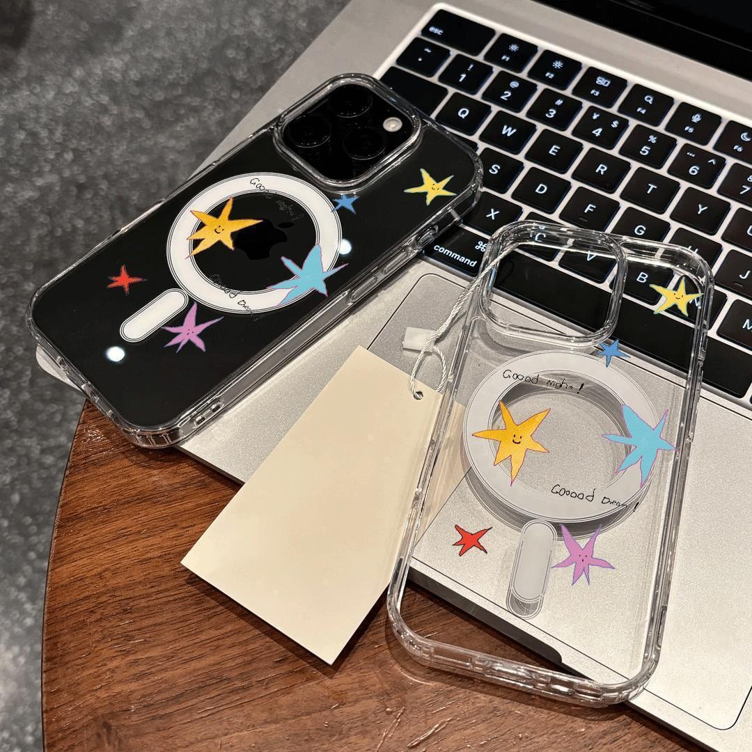 五彩星星适用苹果15promax亚克力17 16透明11磁吸壳a