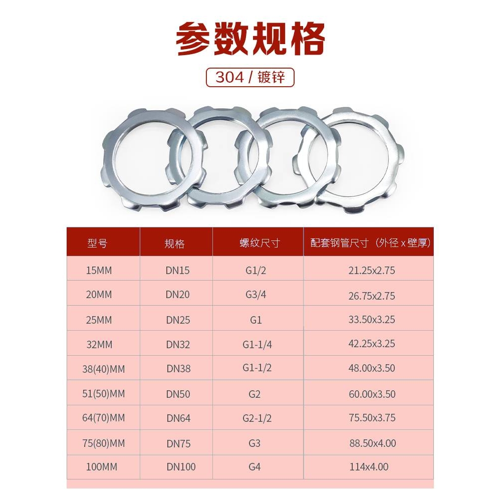 镀锌钢管锁母花边水纳子桥架锁紧螺母 304不锈钢锁扣并帽金属锁片