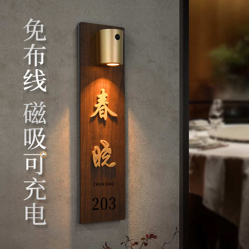 2025新款发光门牌定制酒店餐厅棋牌室门号牌带灯包厢充电感应门牌