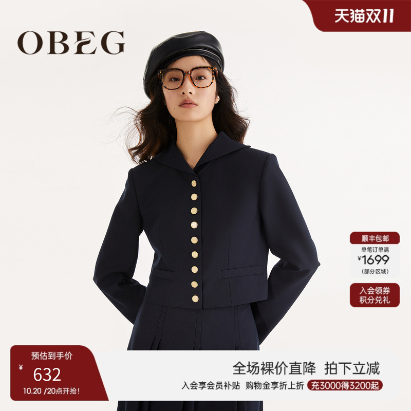 OBEG欧碧倩翻领廓形短款外套秋季感气质上衣50463520