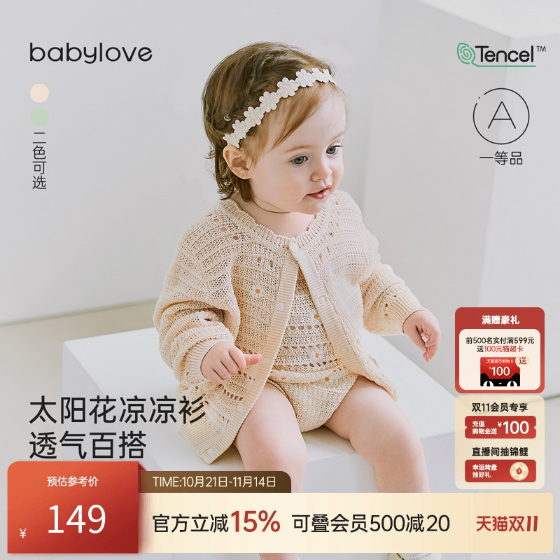 babylove女宝宝开衫春秋针织提花外套花边领上衣百搭衣服空调
