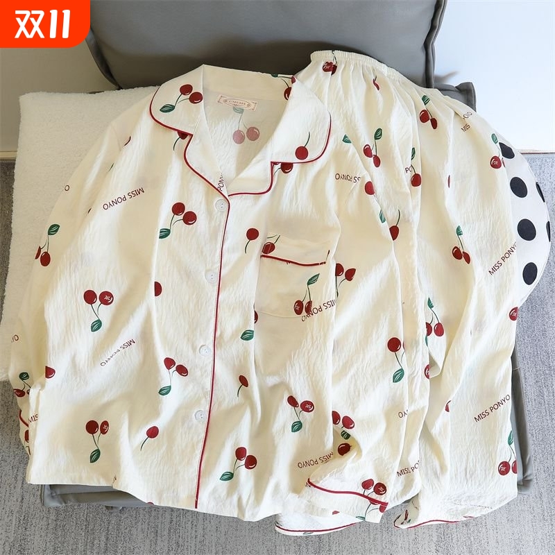古今100%纯棉男女睡衣翻领开衫长袖长裤可外穿休闲家居服情侣套装