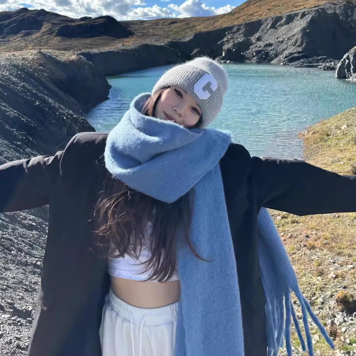 韩版纯色加厚围巾2025冬季新款高级感围脖冬天百搭保暖防寒披肩女