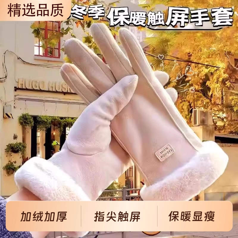 手套女冬季高级感保暖手套冬天加绒加厚可爱麂皮绒女士骑行防寒骑