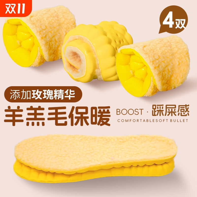 踩屎感羊羔绒保暖鞋垫冬季防寒加绒加厚男女吸汗透气久站不累防臭