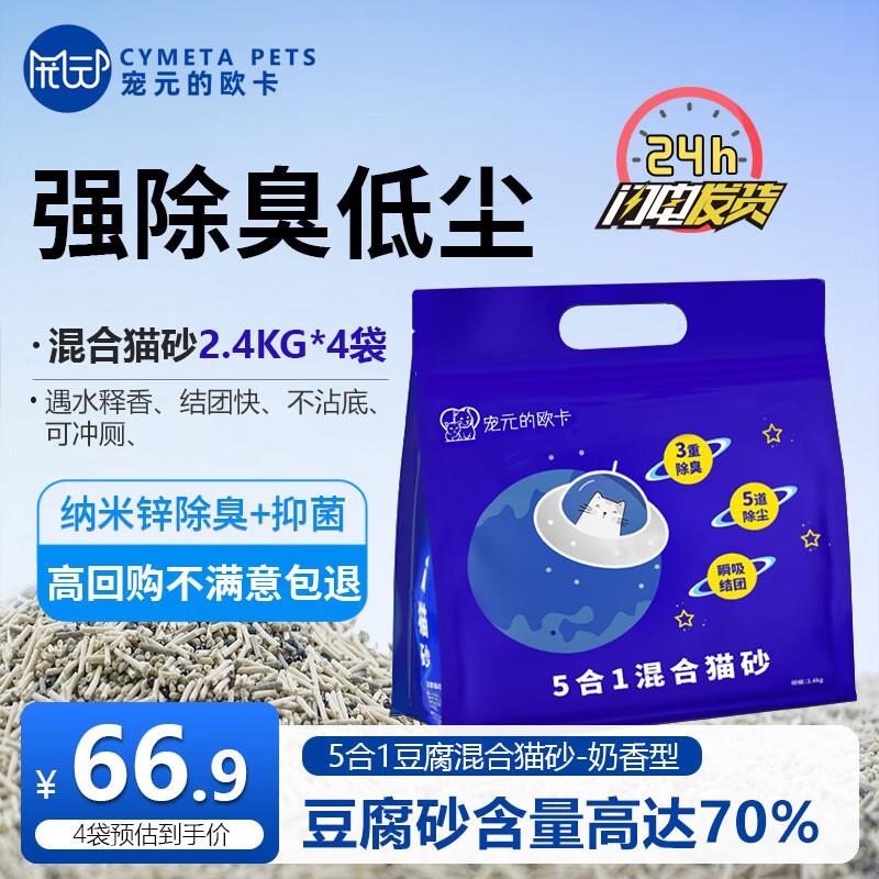 宠元的欧卡豆腐猫砂混合5合1除臭低尘植物活性炭豆腐砂宠物成幼猫
