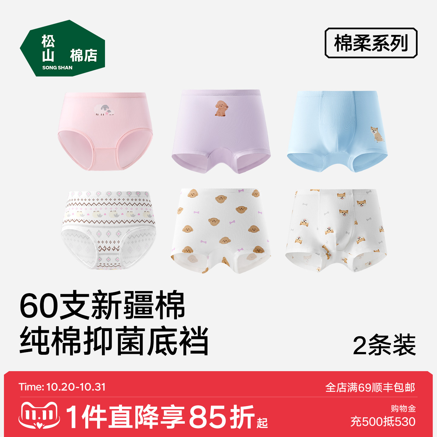 松山儿童60支高品质新疆棉更细腻纯棉3A植物抑菌内裤男女童平角裤