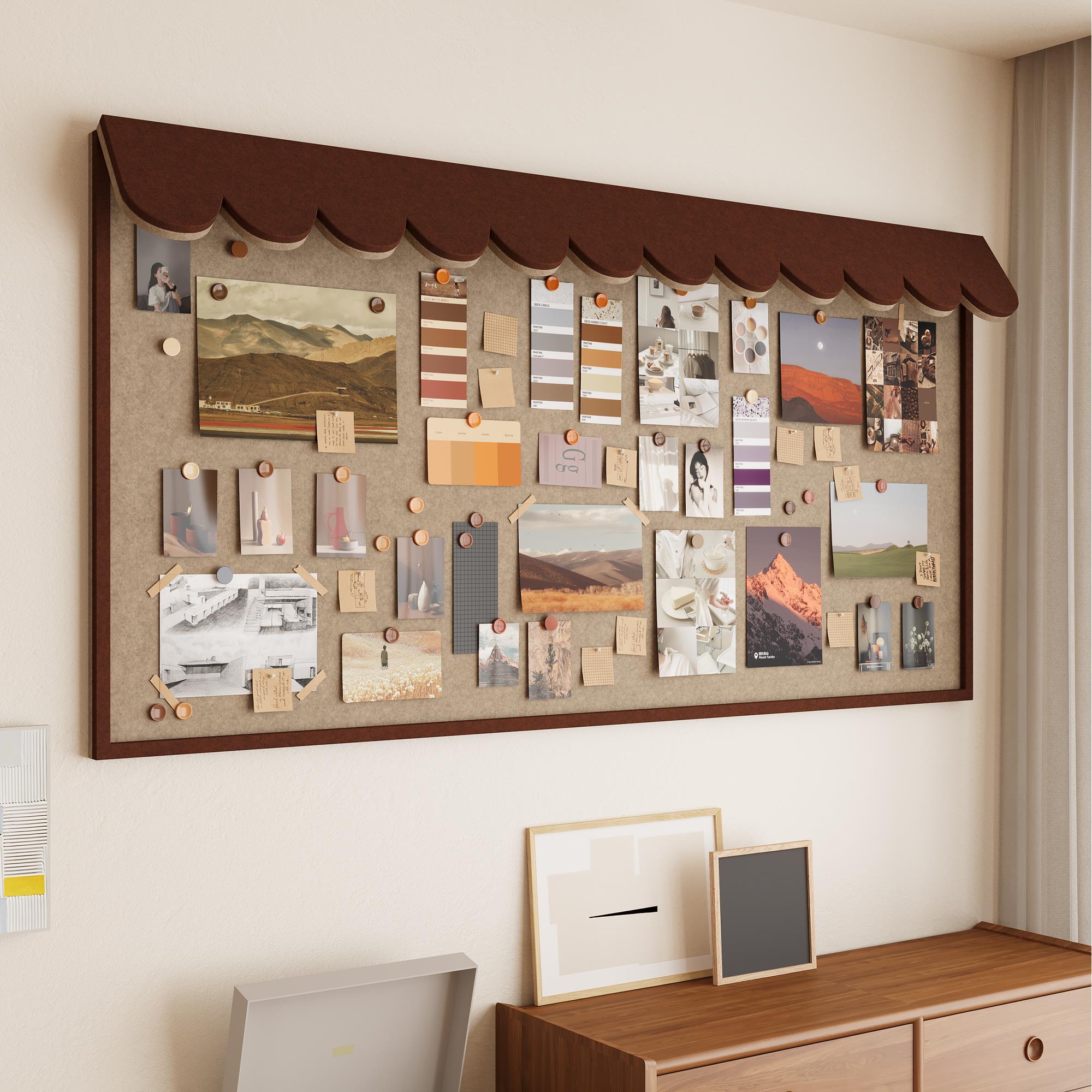 立体屋檐毛毡板照片墙复古高级感定制墙贴软木板留言板相片展示板