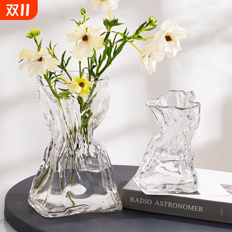 不规则玻璃花瓶透明水养鲜花客厅干花高级感ins风装饰摆件台面